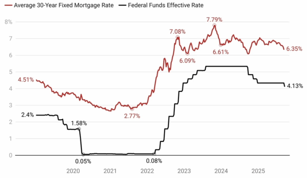 The Federal Reserve added momentum with its first rate cut since 2024 lowering the benchmark federal funds rate by a quarter point. While mortgage rates are tied more closely to Treasury yields than directly to the Fed this cut signals a broader trend. Variable rate borrowers such as those with credit cards or certain loans should see relief more quickly. For mortgages the immediate change may be modest but expectations for continued cuts through 2025 and 2026 are likely to keep gradual downward pressure on rates.