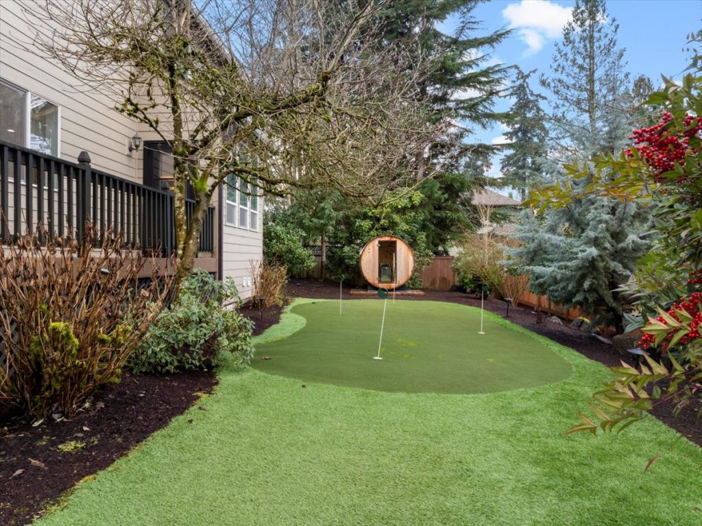 And let’s not forget the backyard—it’s an absolute oasis! Imagine perfecting your golf swing on the backyard putting green, or enjoying the outdoors on the covered deck. For those who love a bit of pampering, the private sauna and hot tub are just the ticket for some well-deserved relaxation.