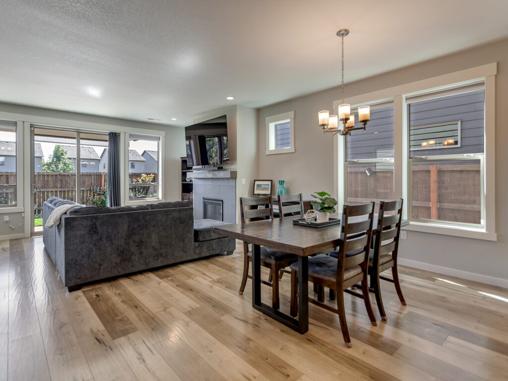 The open floor plan feels light and inviting, with sleek HD laminate flooring, designer lighting and warm shiplap accents that give the home a touch of personality. The living room centers around a cozy gas fireplace, while the kitchen stands out with quartz countertops, stainless steel appliances, a gas range and plenty of storage for everything you need.